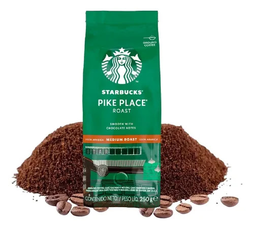 O Café Starbucks Pike Place Roast 250g é um café torrado e moído, 100% Arábica, de torra média, com notas de chocolate e castanhas tostadas. É um blend suave e equilibrado da América Latina, criado para ser um café de consumo diário, ideal para coar e disponível em embalagens de 250g.