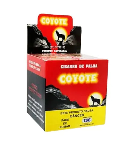 A caixa de cigarro de palha Coyote (10 maços) é um produto artesanal de Minas Gerais, composto por 10 maços de palheiros tradicionais, totalizando cerca de 200 a 400 unidades, dependendo do conteúdo de cada maço. Feitos com tabaco selecionado e palha de milho fina, são conhecidos pelo aroma agradável e sem conservantes.