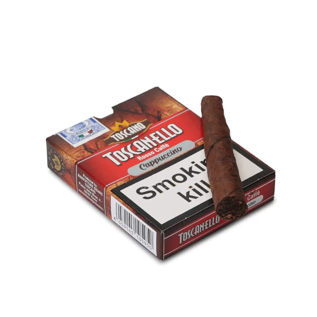 Produzido na Itália, o Toscanello Rosso Caffè Cappuccino utiliza capa de Kentucky dos Estados Unidos, envolvendo uma mistura especial de tabacos Kentucky provenientes dos EUA e da Itália. Seu processo de aromatização confere um perfil único, com notas marcantes de cappuccino que se integram perfeitamente à força característica do tabaco fire-cured.