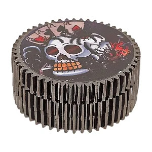 Para quem joga pesado até na escolha dos acessórios, o Dichavador de Metal Engrenagem Preto Metálico – Caveira com Cartas A A A A é a pedida certa! Com um design ousado que combina caveira e cartas de baralho, esse modelo é ideal para quem valoriza atitude e originalidade.