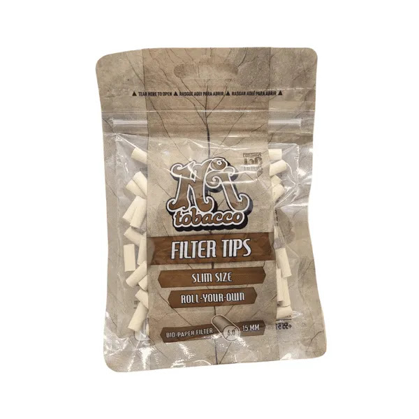 Filtro Hi Tobacco Biodegradável tamanho Slim Size com alta filtragem de substâncias derivadas da queima. Produto livre de processos químicos, com rápida degradação na natureza. Bags com 130 filtros para sua sessão!